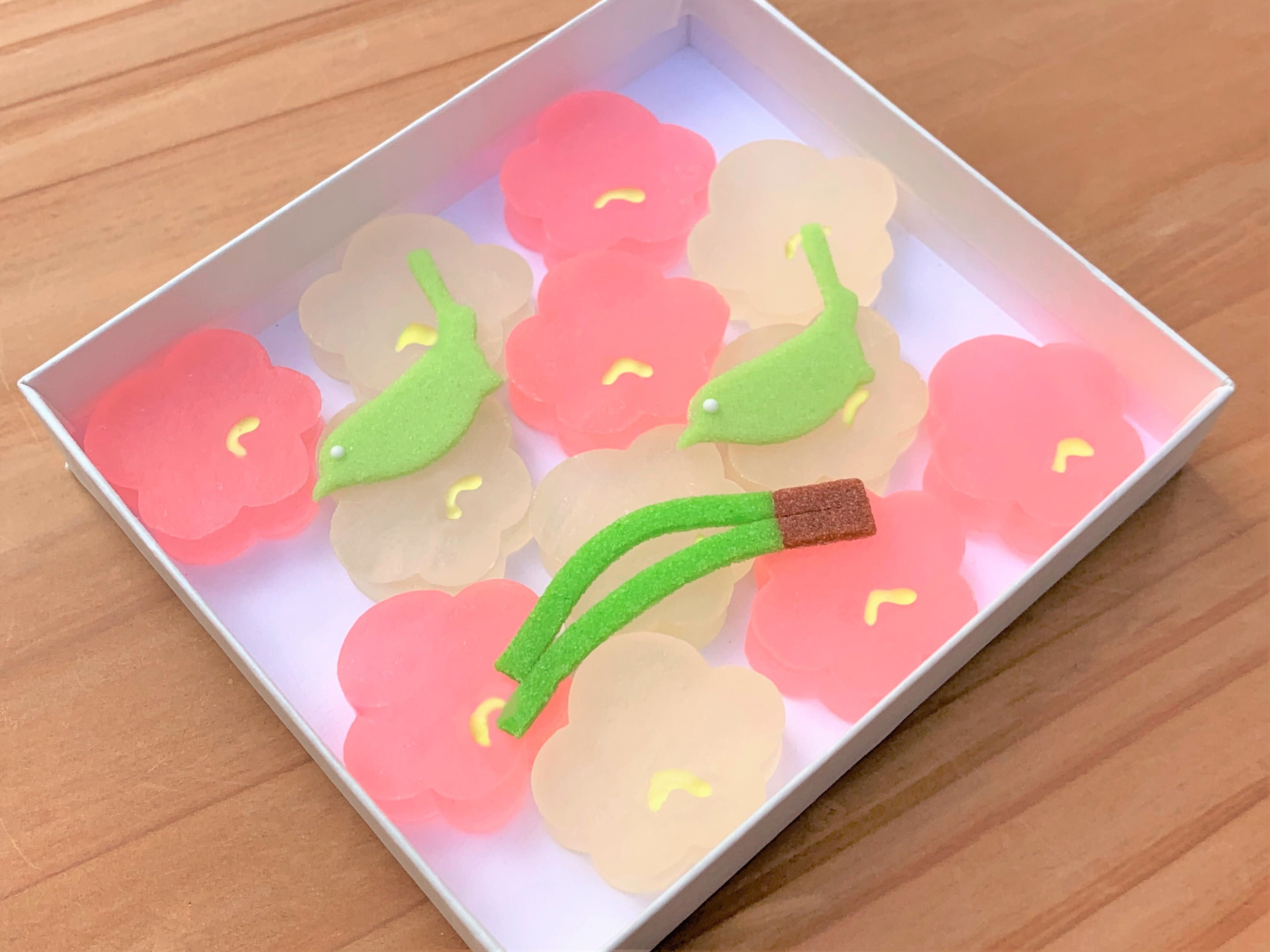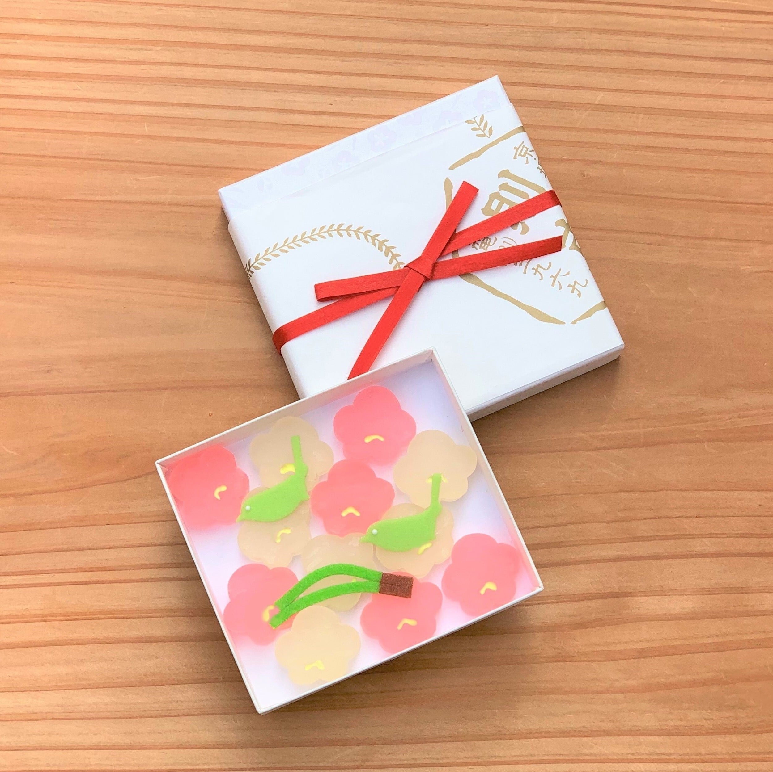 可愛らしくほころぶ梅の花と、その香りにたぐり寄せられやってきた春告鳥(うぐいす)を詰合わせました。