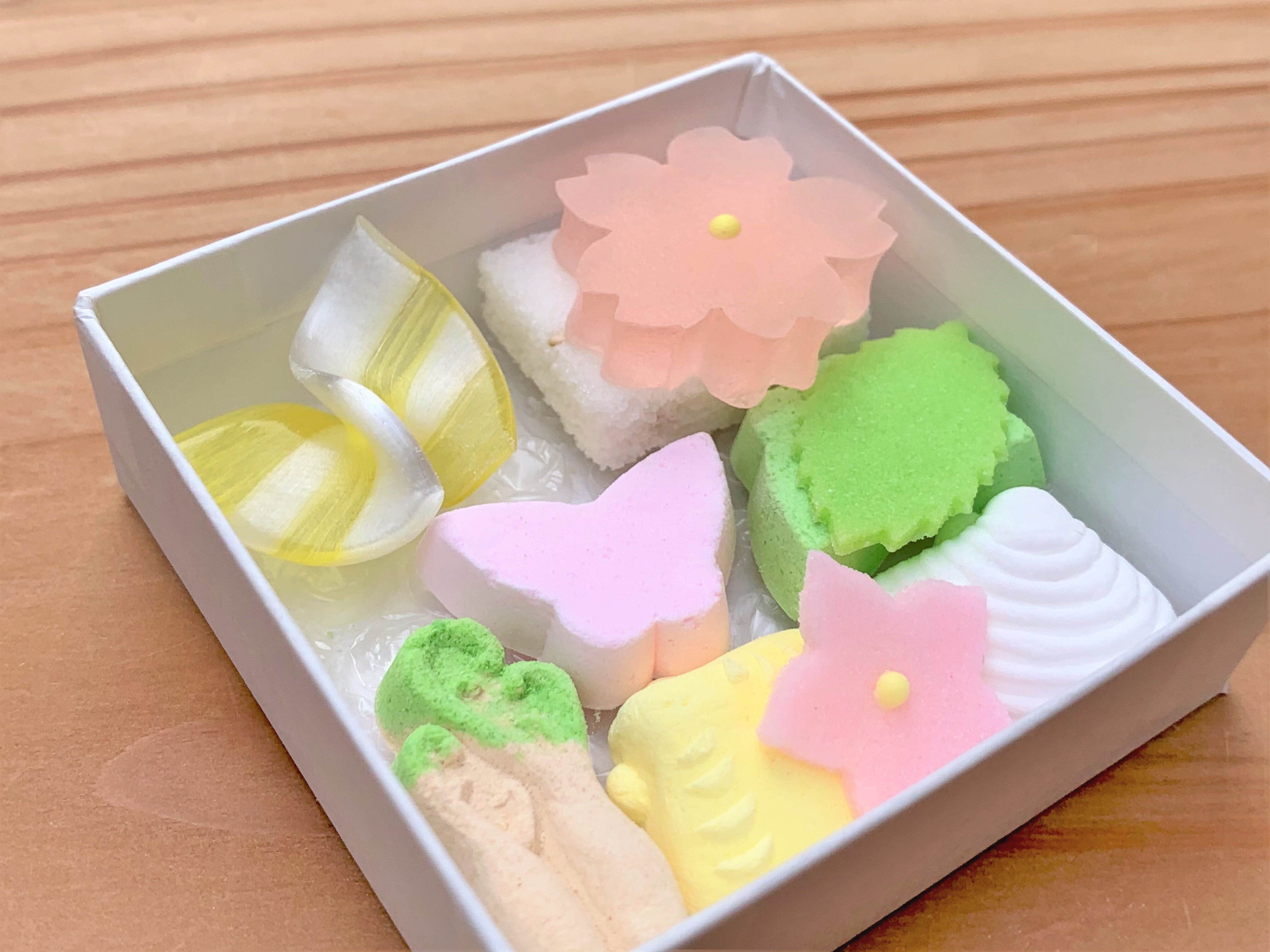 咲きほころぶ桜や桃の花、春の訪れを喜ぶ蝶や蕨が入った春らしい お詰合わせです。