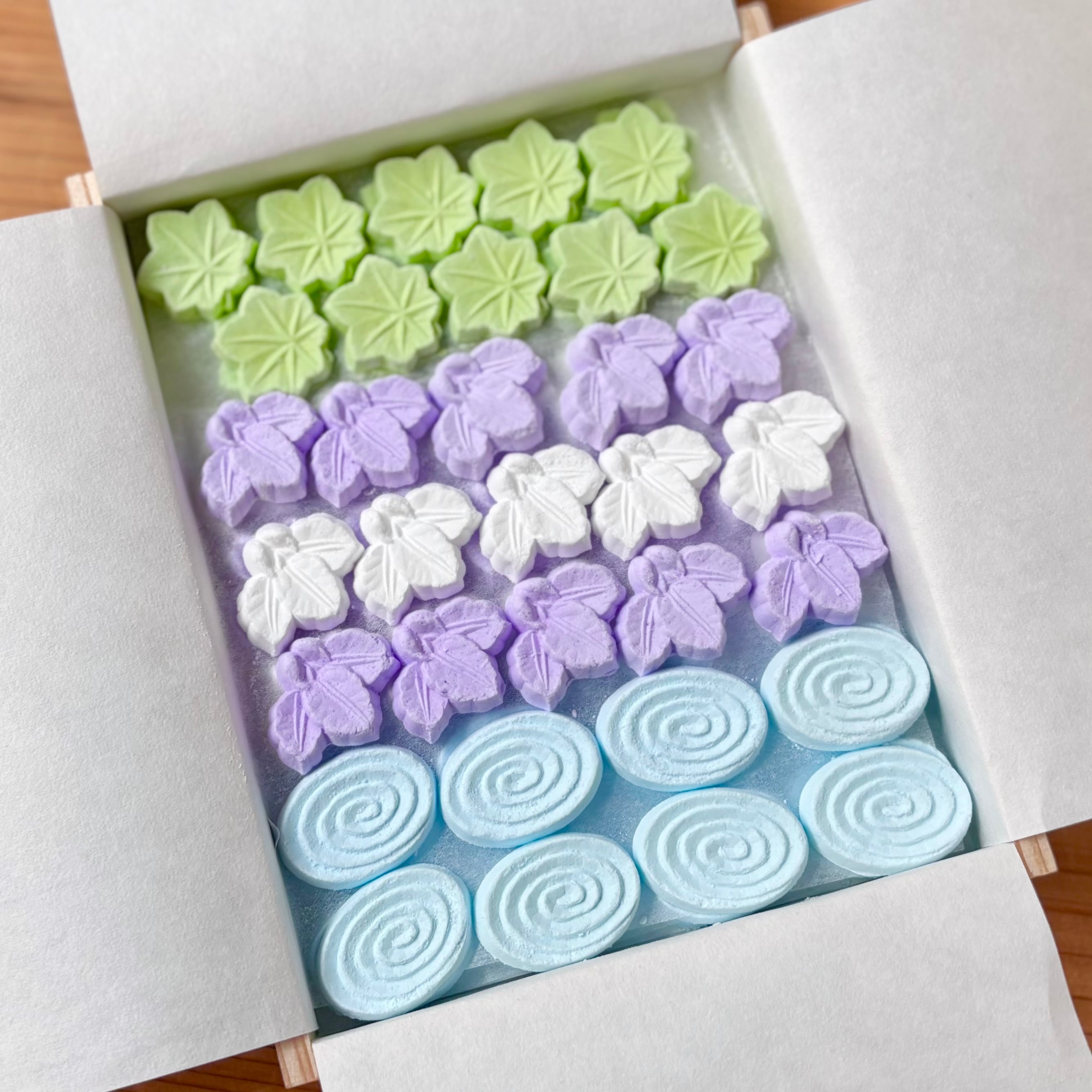 青楓・紫白の杜若・観世水が入った季節の詰合わせ。