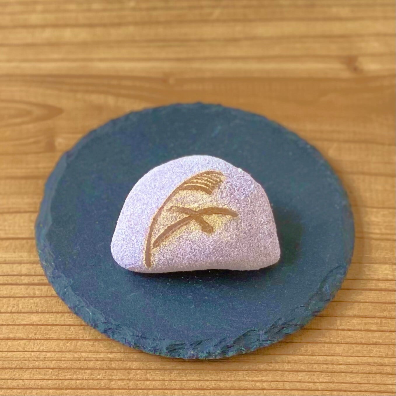 紫色にほんのり白色をぼかした外郎で白餡を包み、秋の夜風にゆれるススキを表現しました。