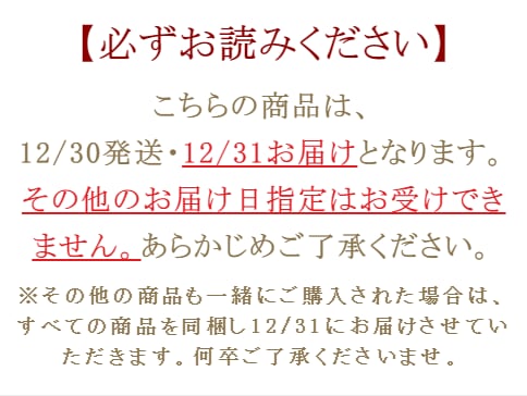 ※こちらの商品のお届けは、12/31のみとなります。必ず〈お届け時間〉をご指定くださいますようお願い申し上げます。